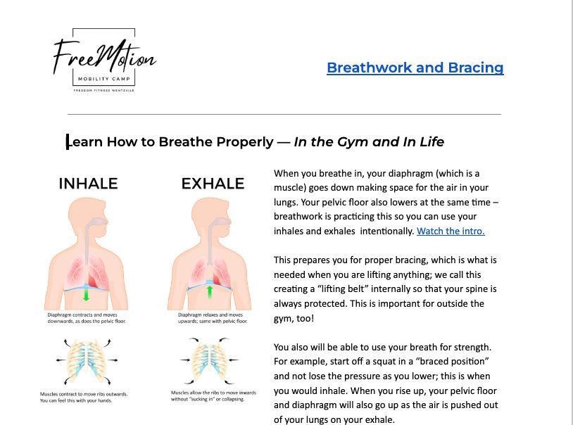 We start with going over how to breath because this is really a missing piece in developing your core and increasing your mobility.