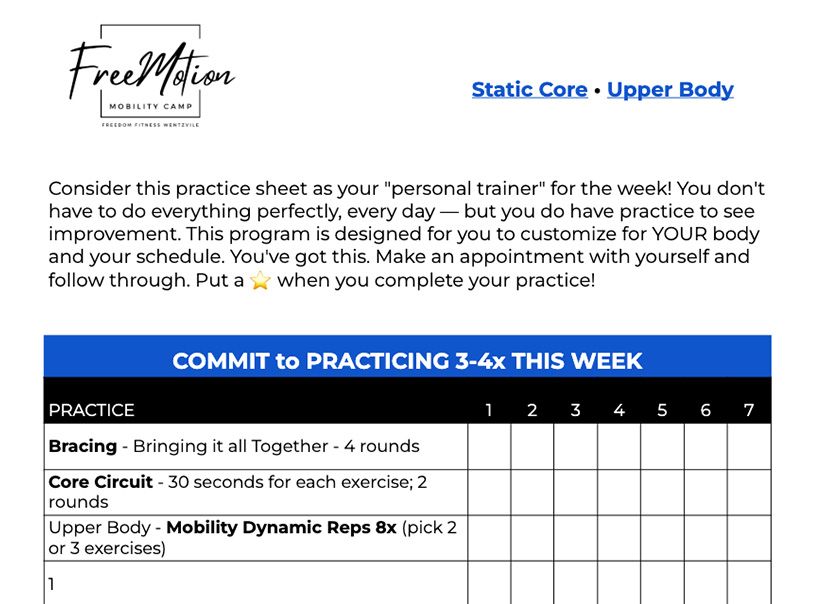 We have a section that is focused on increasing static core strength, another on dynamic core that is more reflective of how we move in real life.